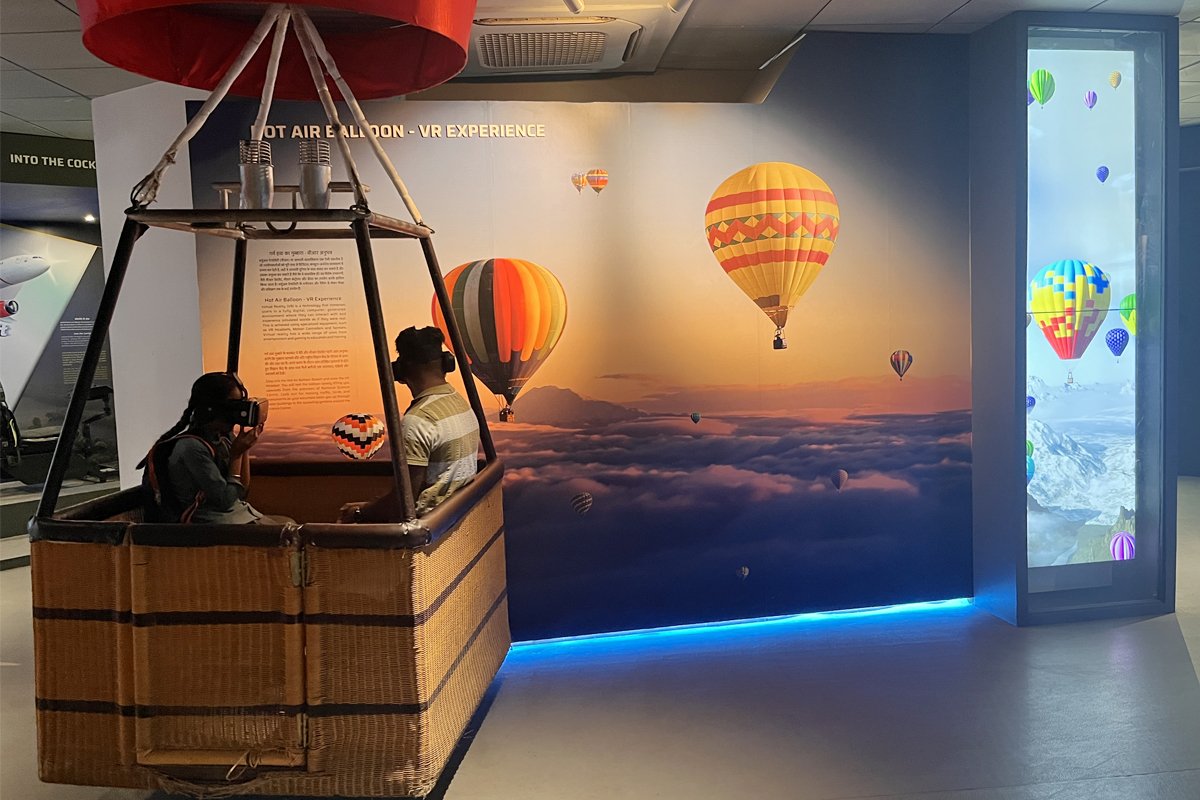 By wearing the VR Headset and step into a virtual sky, experience the thrill of floating thousands of feet above the ground—without ever Virtual Reality (VR) is not just a digital experience—it is a powerful integration of mechanical systems, sensors, and real-time simulation leaving the museum. The VR Hot Air Balloon Experience combines cutting-edge virtual reality with real scientific principles to give you a breath-taking journey through the skies.Behind every VR experience lies a combination of Motion tracking systems that detect head and body movement with high precision. A Mechanical feedback component that simulate real-world sensations like motion, vibration, and balance with actuated platforms that tilt, rotate, or elevate to mimic physical movement