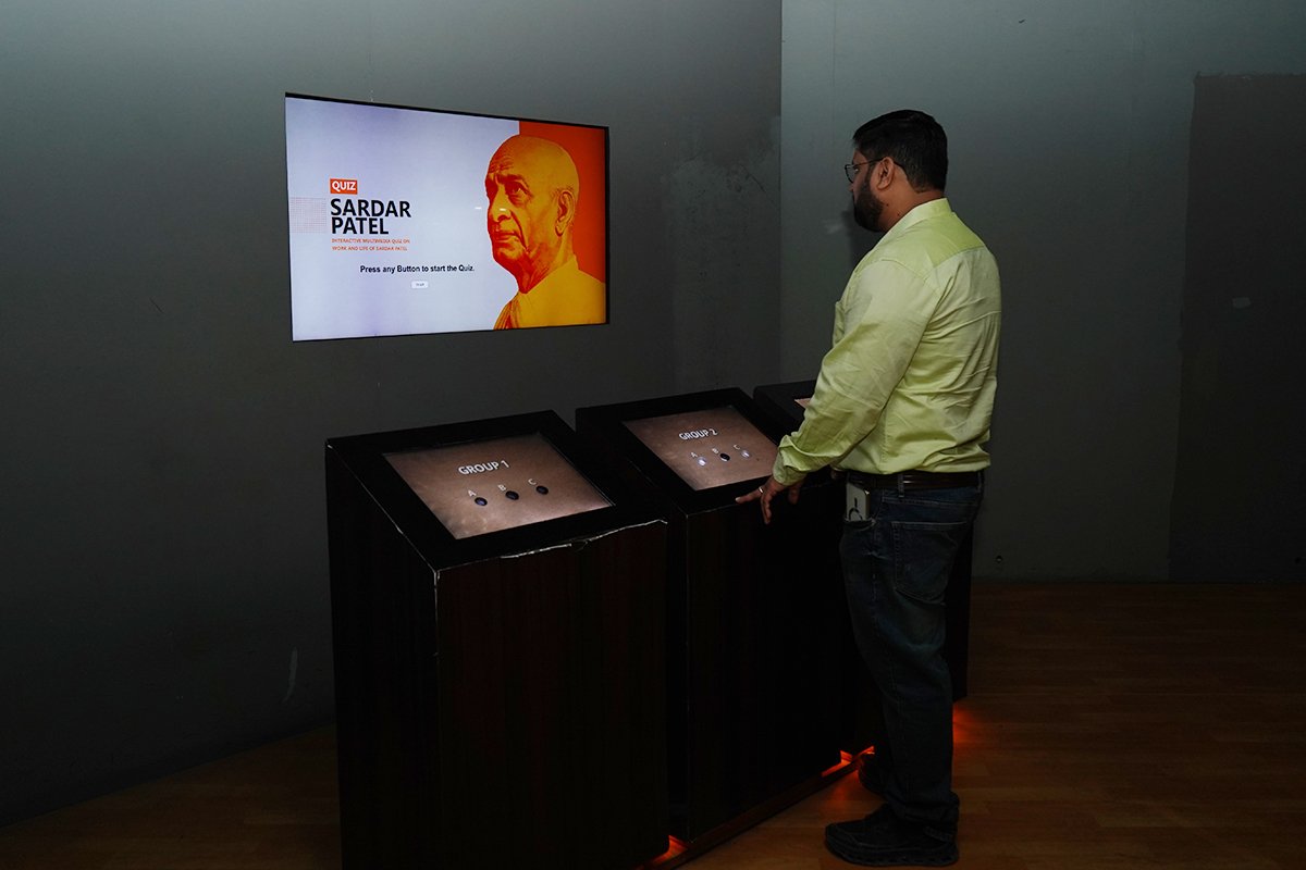 The gallery dedicated to Sardar Vallabhbhai Jhaverbhai Patel presents his life and legacy through immersive and engaging storytelling. Using interactive exhibits, digital displays, and large-scale projection walls, the gallery brings to life his pivotal role in India’s freedom movement and the integration of the princely states. These contemporary interpretive tools enable visitors to explore key moments, decisions, and achievements of Sardar Patel in an engaging manner, offering an enriching experience that connects history with modern technology
